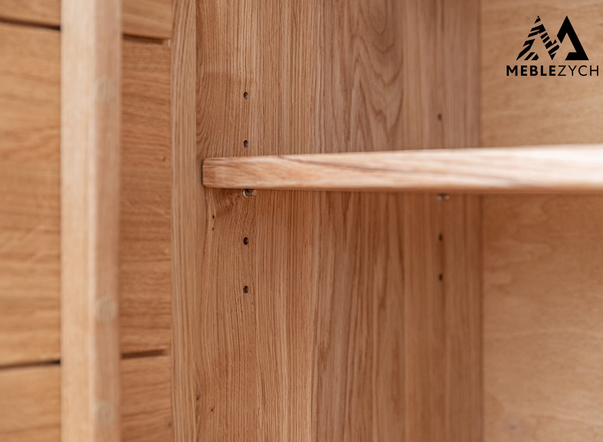 Drewniana komoda proponowana na tej podstronie jest bardzo wytrzymała. Wynika to głównie z materiału zastosowanego do jej produkcji, którym jest naturalne drewno w postaci dębu olejowanego. To surowiec ekskluzywny, lecz także praktyczny, gdyż dobrze radzi sobie z trudami codziennego użytkowania. Można go również z łatwością utrzymać w odpowiednim stanie wizualnym, gdyż świetnie znosi dużą częstotliwości zabiegów pielęgnacyjnych. Z drewna wykonana jest także tylna ściana oraz niektóre półki z pięcioma poziomami regulacji.
