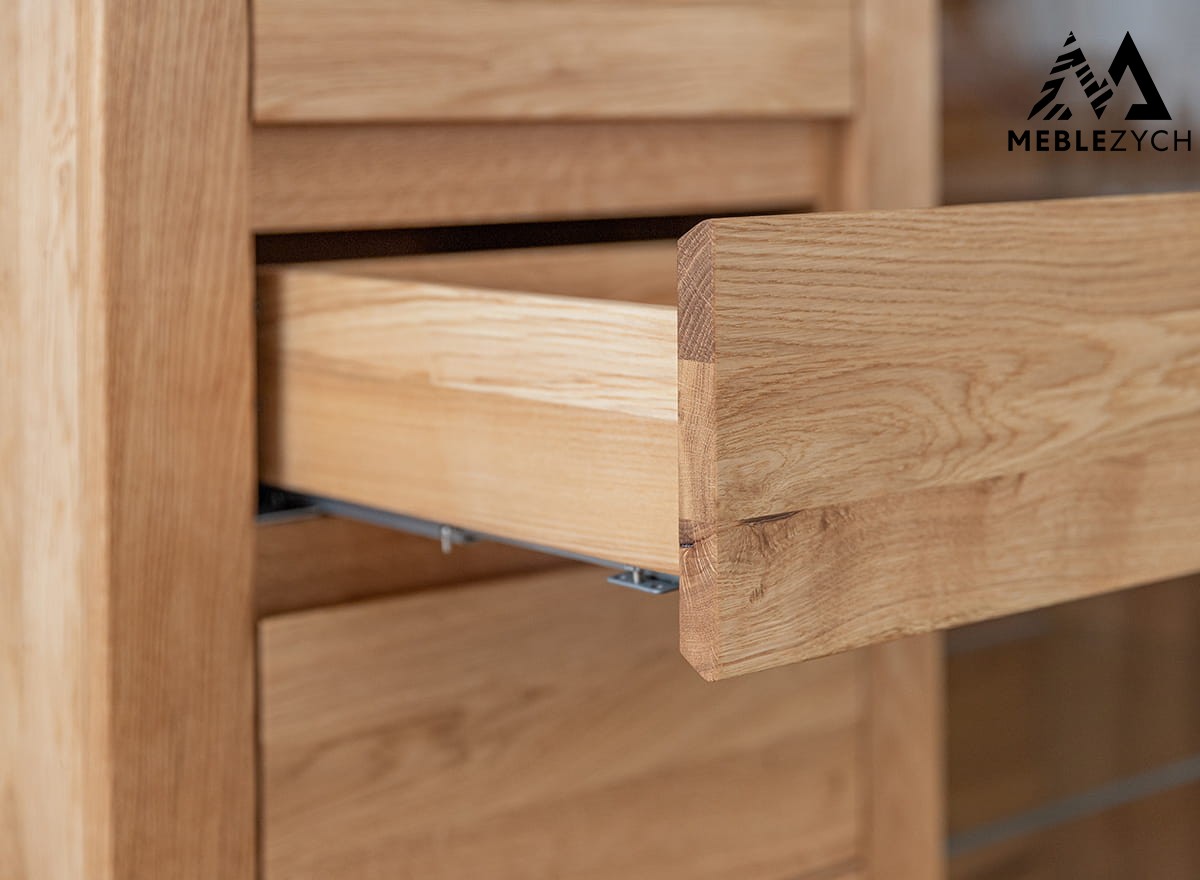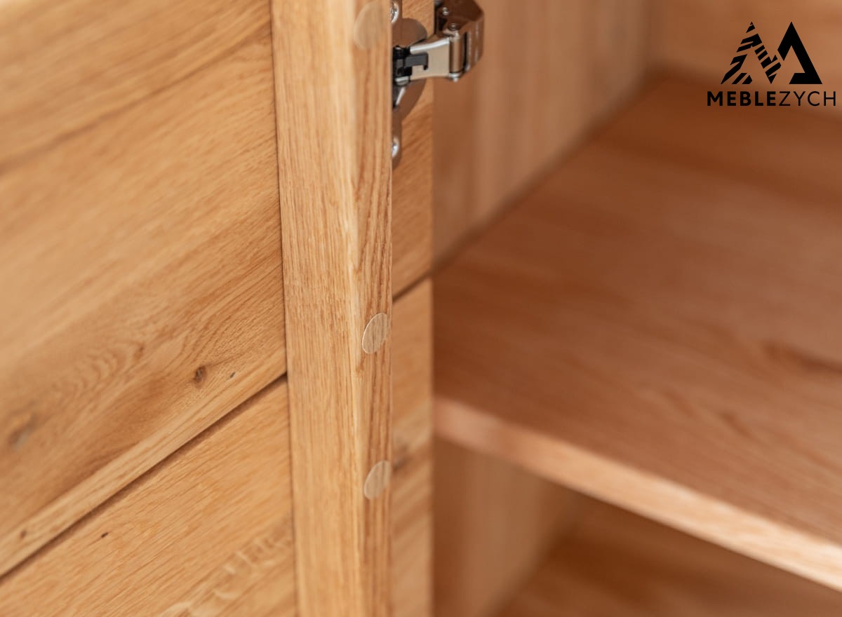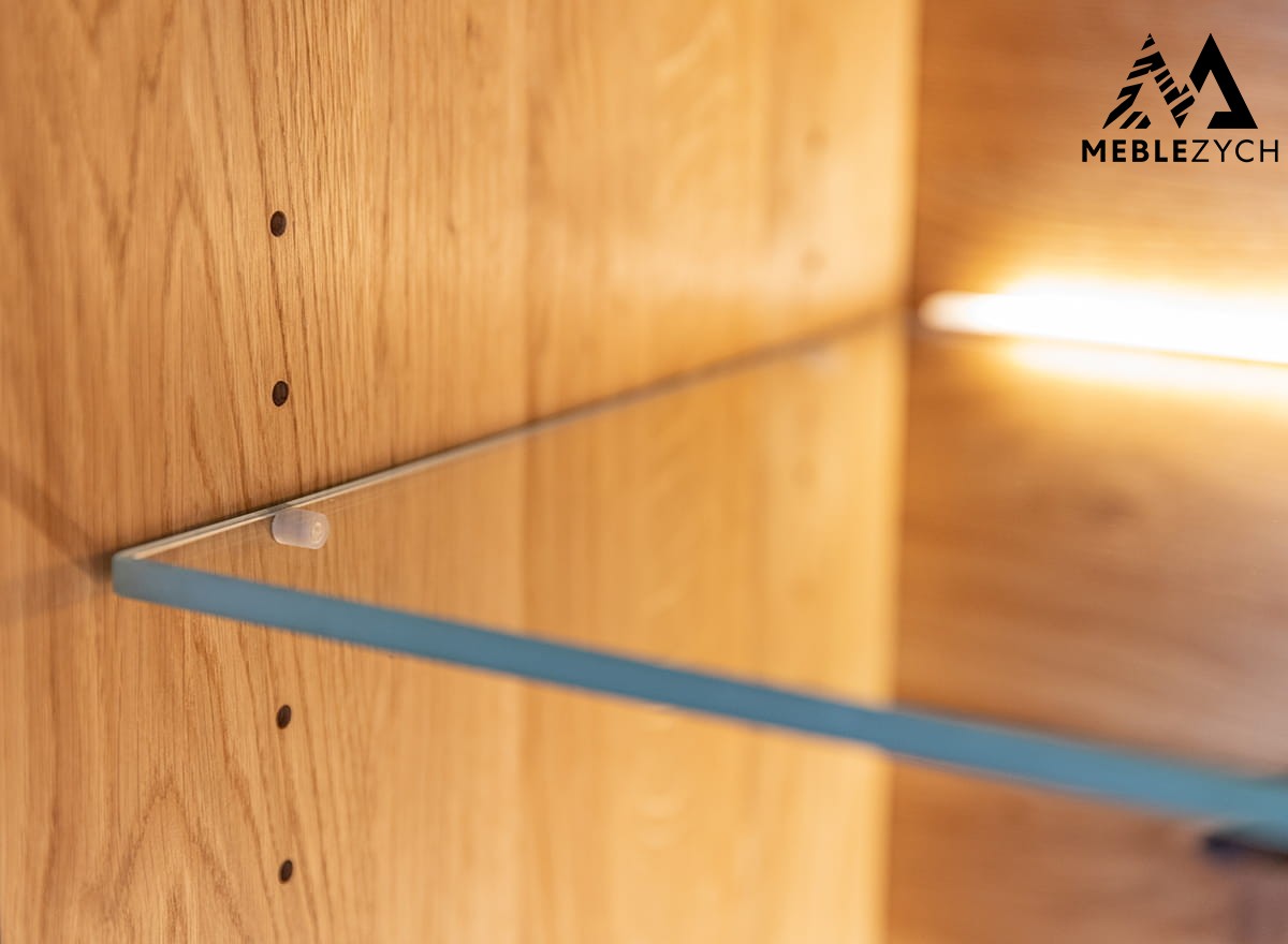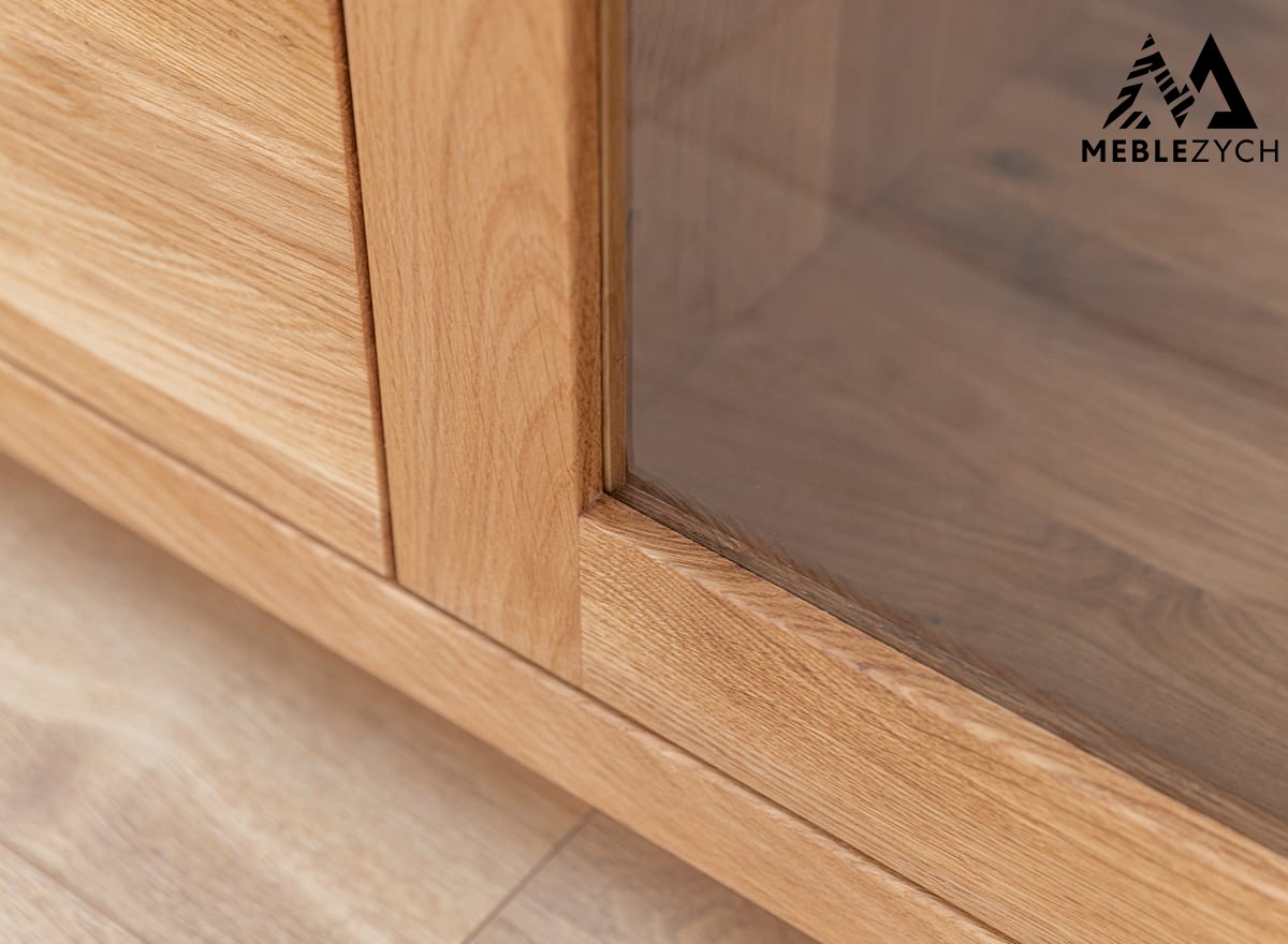Mała witryna dębowa cechuje się nie tylko wspaniałym designem, lecz także przemyślaną w najmniejszych szczegółach konstrukcją. Została wykonana z wysokiej klasy drewna dębowego – mocnego, sztywnego oraz gęstego i olejowanego – dzięki czemu znakomicie sobie radzi z codziennym użytkowaniem. Witryna drewniana jest dzięki temu stabilna, mocna i na długo atrakcyjna. Na wysoką sztywność mebla ma wpływ także tylna ścianka, wykonana z litego drewna.