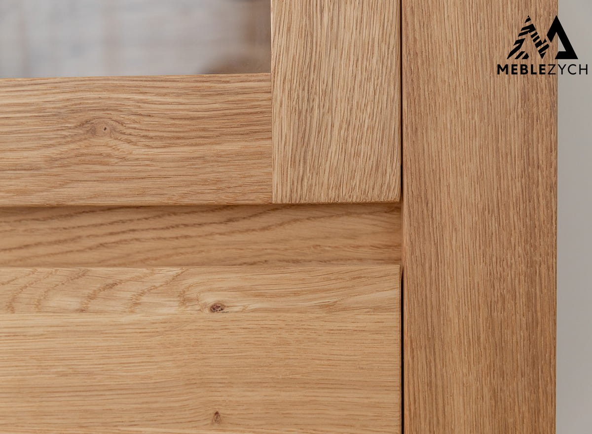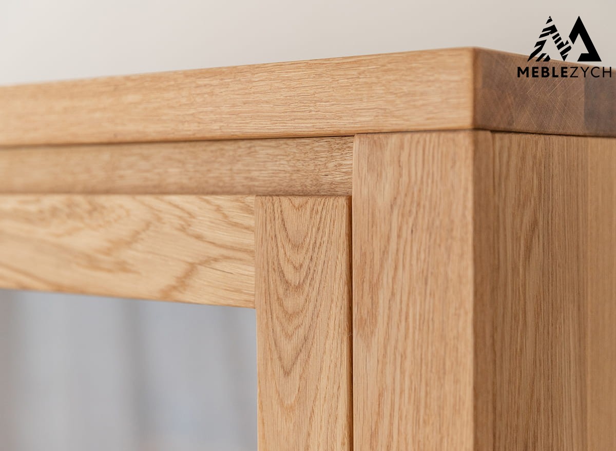Oferowana mała witryna dębowa stanowi dobry wybór w swojej kategorii także w kwestii jakości. Cały mebel został wykonany oczywiście z drewna – naturalnego, mocnego i sztywnego, poddanego procesowi olejowania. W efekcie witryna drewniana nie jest narażona na przyspieszone zużycie i doskonale znosi wszystkie dopuszczalne zabiegi pielęgnacyjne dostosowane do tego naturalnego surowca.