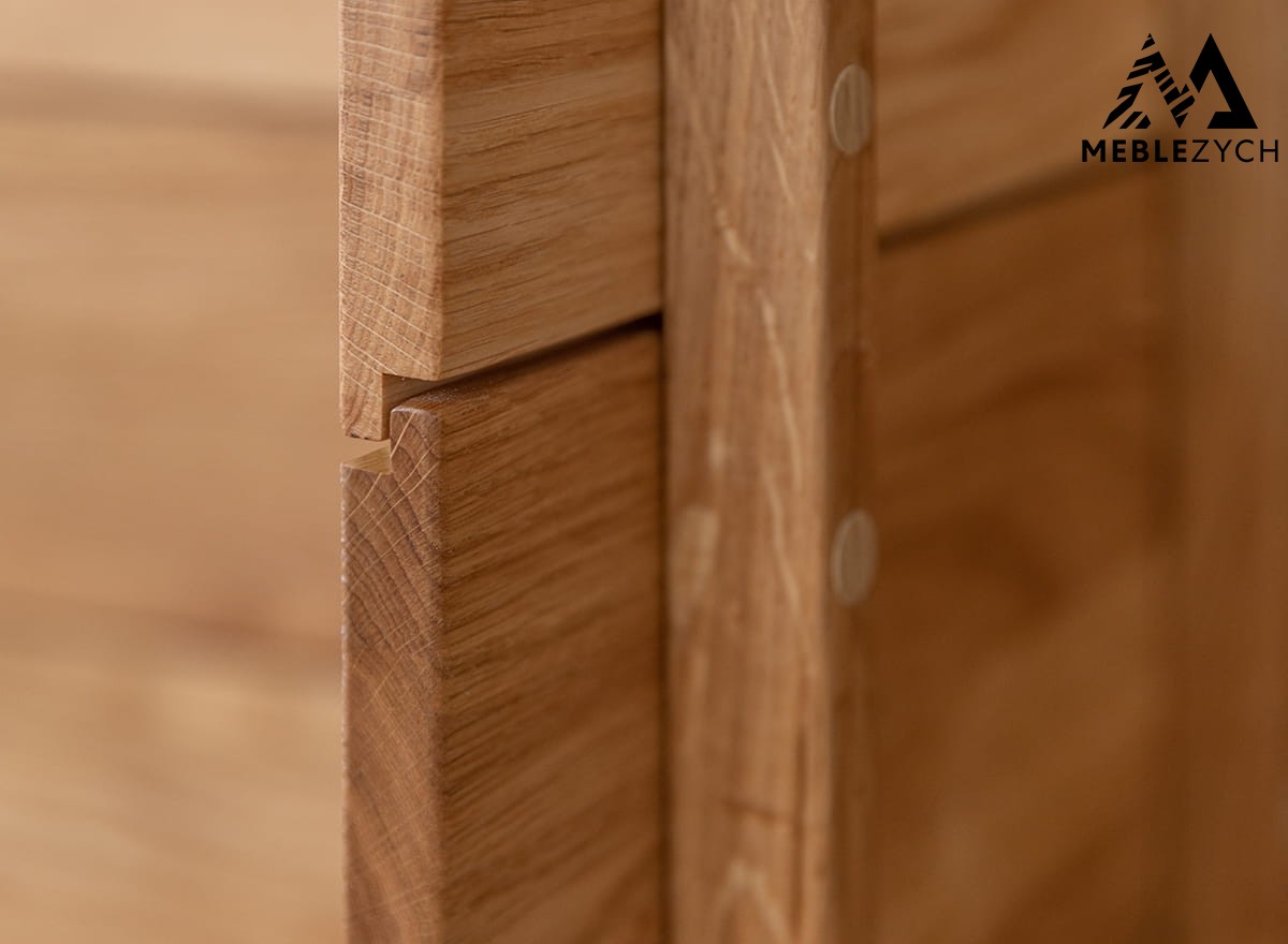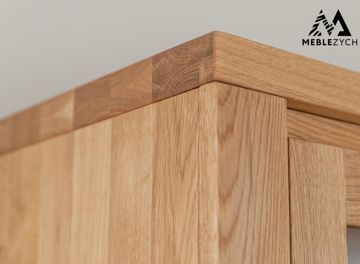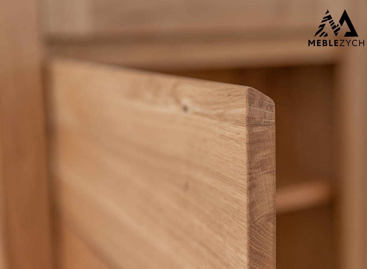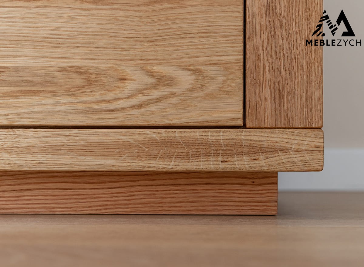 System cichego domyku znacznie zwiększa komfort eksploatacji mebla, a precyzyjnie płynnie działające zawiasy oraz prowadnice poprawiają wygodę w trakcie zamykania i otwierania szuflad i drzwiczek. Również elementy niewidoczne cechują się wysoką jakością – konstrukcja jest stabilna, a ściana tylna wykonana z litego drewna.