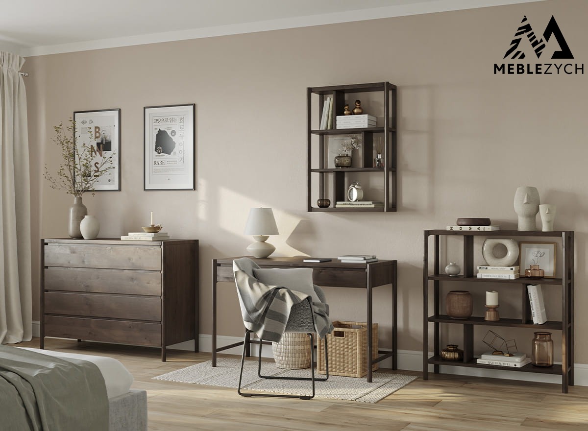 Cztery głębokie szuflady z cichym domykiem to wygoda i porządek w jednym. Możesz przechować w nich ubrania, akcesoria, papiery – wszystko, co potrzebujesz mieć pod ręką. A blat? Może być podstawą pod lustro, miejscem na lampę albo przestrzenią na to, co zmienia się sezonowo. Komoda drewniana z linii Campi w wersji tabacco wygląda dyskretnie, ale pracuje każdego dnia.