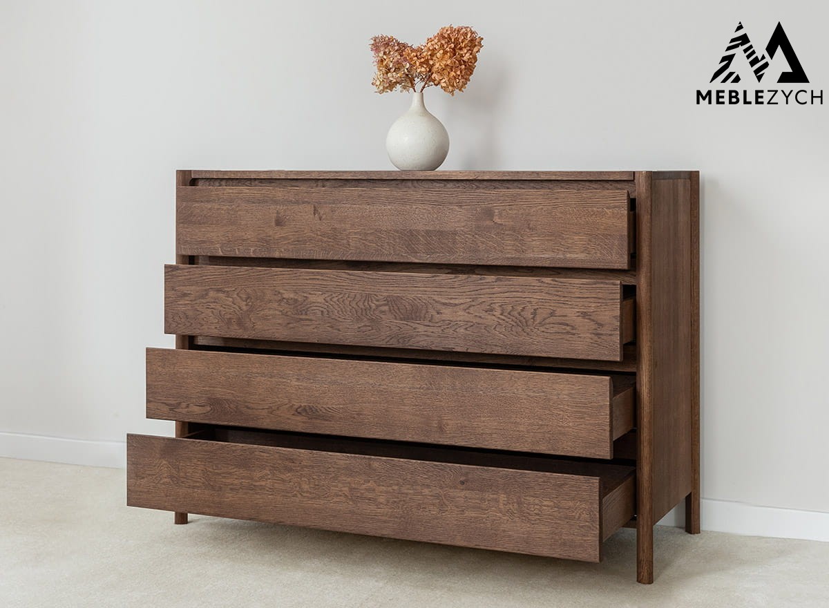 Dębowa komoda z szufladami – drewno, które zaskakuje trwałością i nie potrzebuje ozdób