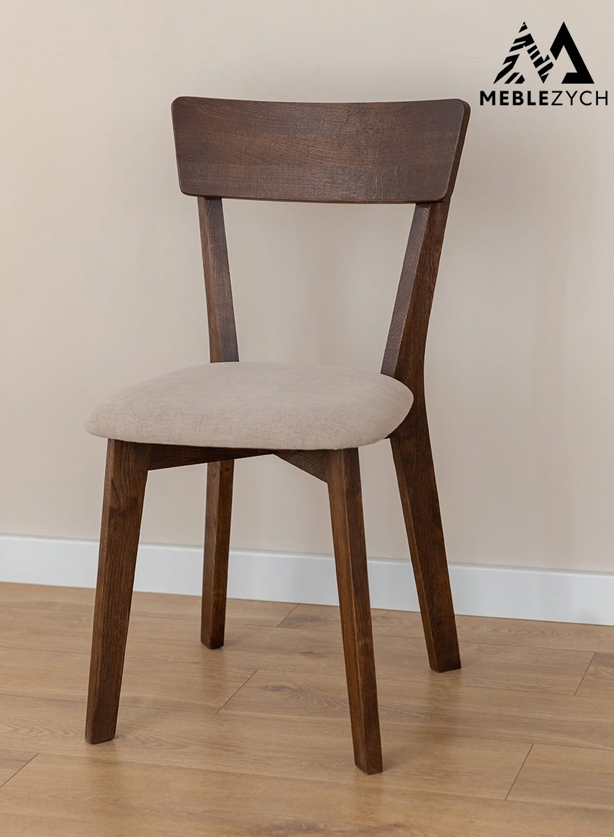 Krzesło dębowe z beżowym siedziskiem Leon M11 Tabacco