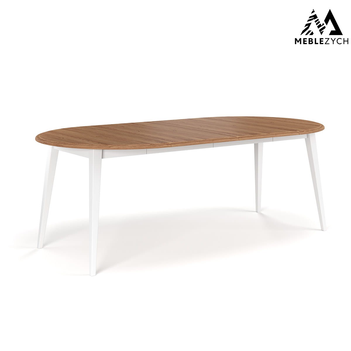 Wszystkie części składowe prezentowanego stołu rozkładanego wykonane zostały z litej sosny fińskiej – zarówno blat, jak i nogi oraz dokładki. Blat został wybarwiony na kolor dębu, co uwydatnia naturalny rysunek drewna i dodaje mu głębi, podstawa natomiast jest malowana wodną farbą o kryciu 85% (RAL 9010), dzięki czemu struktura drewna pozostaje wyczuwalna, a całość zabezpieczona jest przed codziennym użytkowaniem. System rozkładania działa płynnie, a po zamontowaniu dokładek całość pozostaje stabilna. Tymczasem precyzja wykonania, z której słynie ten właśnie mebel, widoczna jest w każdym detalu – od frezowanych krawędzi po spasowanie łączeń.