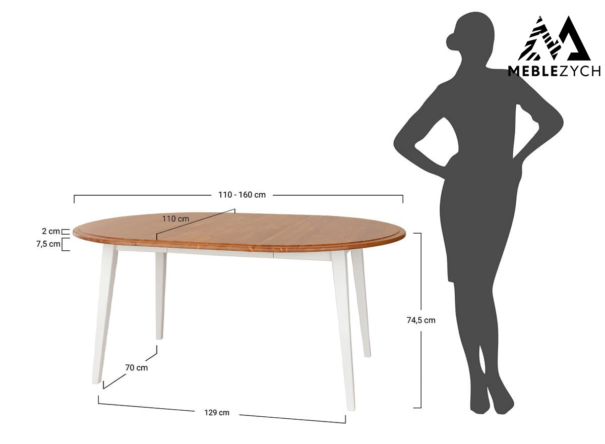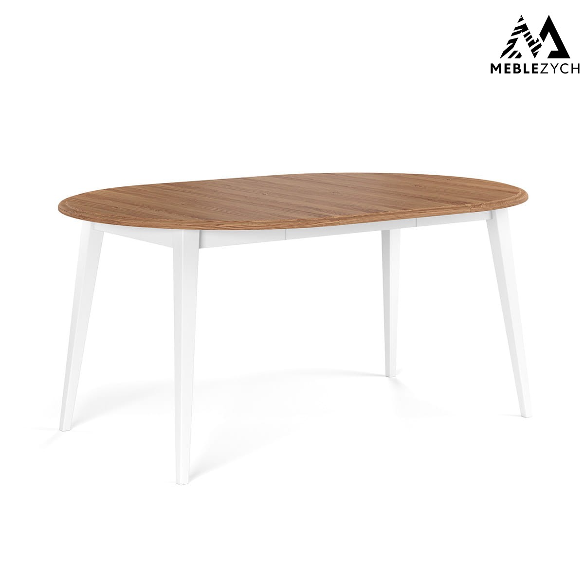 Stół okrągły rozkładany 110+50 cm Belluno Elegante biały+dąb
