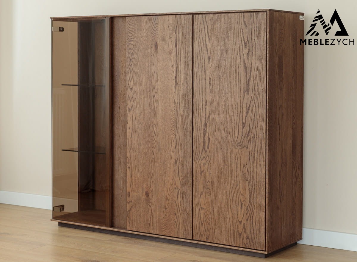 Witryna dębowa z oświetleniem tabacco Collodi – dębowa jakość na lata użytkowania