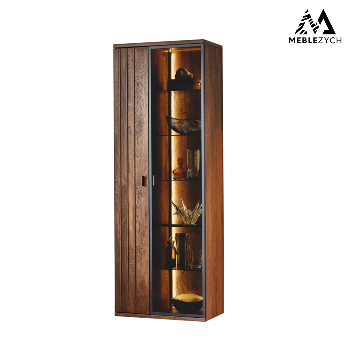 Witryna z przeszkleniem 2D – ciemny dąb Borgo
