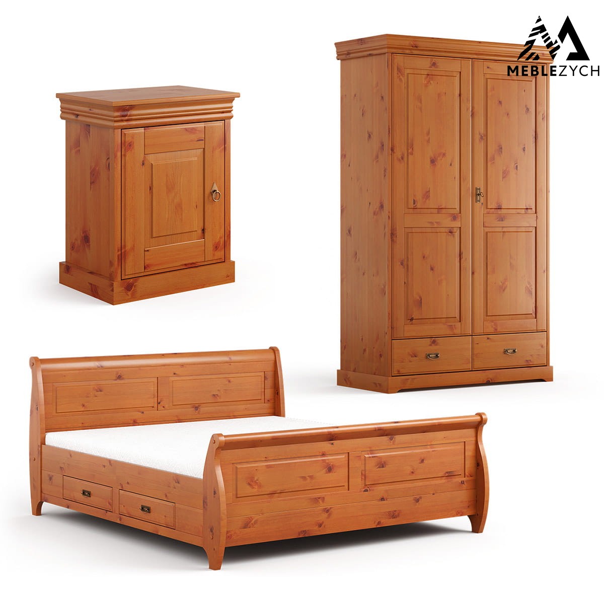 Zestaw mebli do sypialni z naturalnego drewna miodowa sosna - Toskania